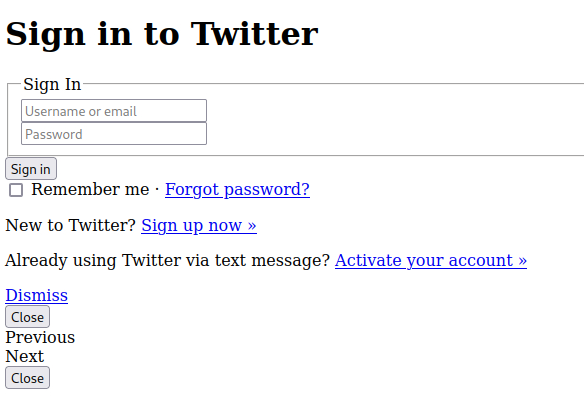 설명드리기 위해 Twitter 모의 피싱 서버를 잠깐 실행시켰습니다.