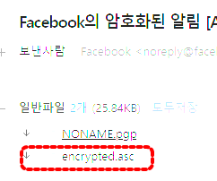 따라서 암호화되지 않은 이메일이 Facebook 이름으로 온다면 바로 피싱 이메일이라는 것을 확인할 수 있으며, Facebook 로그인에 사용되는 기본 E-mail 계정이 해킹 당하더라도 보안코드나 링크가 암호화되어 발송되기 때문에 Facebook 계정은 안전하게 보호할 수 있습니다.