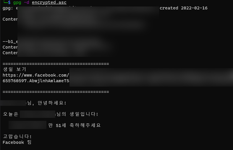 Facebook에서는 "암호화된 알림 이메일" 기능이 있습니다. gpg public key를 등록시켜 놓으면 자신의 public key로 메일이 암호화되어서 발송됩니다.