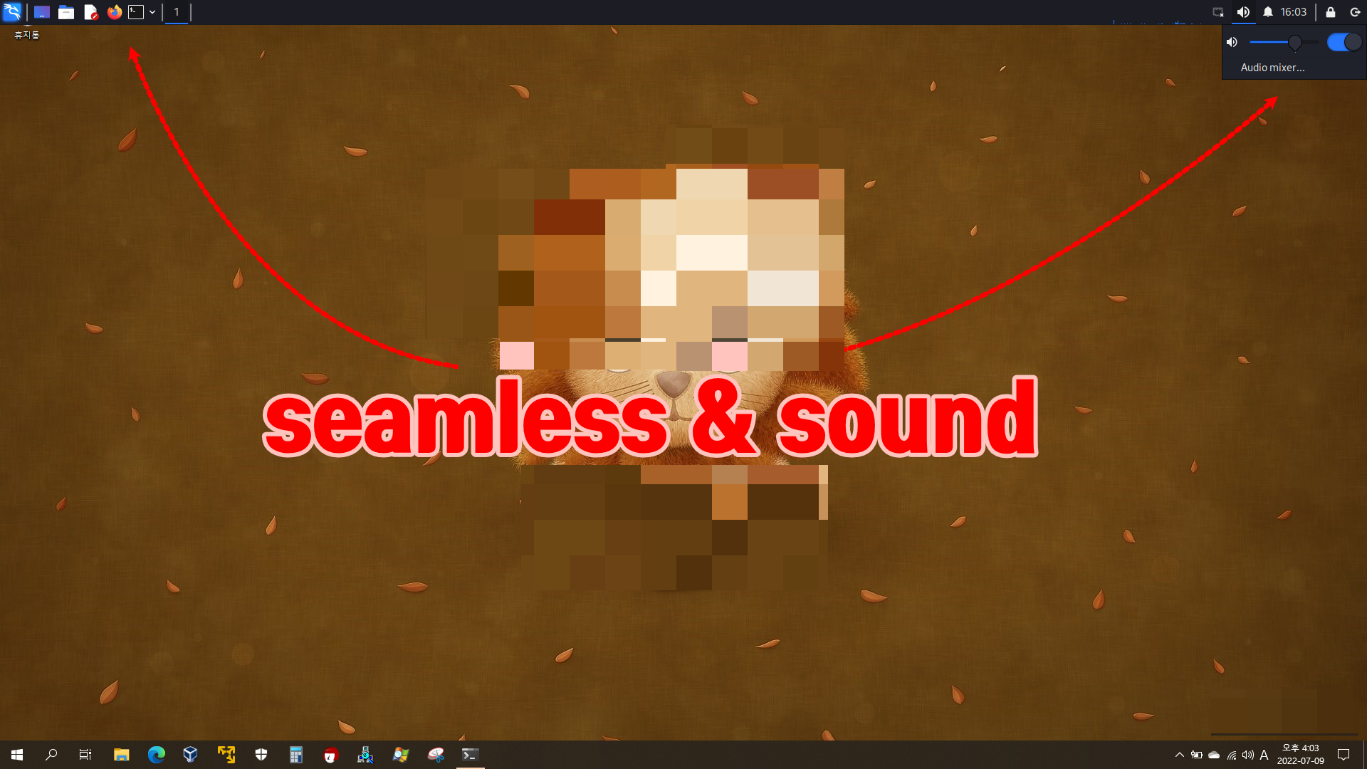 정상적으로 PulseAudio가 연결되었습니다. seamless도 멋지지만, 개인적으로 저는 window mode가 더 편한 것 같아요.
