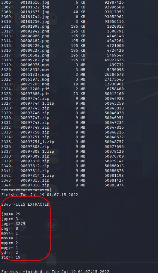 foremost에서 생성된 audit.txt 파일을 확인해보면 jpg 3번째 조건으로 3,279개의 파일이 복구되었음을 확인할 수 있습니다. 그러나 일반적으로 이런 결과는 불필요한 자료만 생성시키게 됩니다.