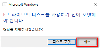 exfat 포맷은 Windows, Mac 모두에 호환되는 filesystem이지만 안타깝게도 Windows 운영체제에 LUKS 암호화 디스크를 연결하게 되면 "디스크를 사용하기 전에 포맷해야 합니다"라는 메시지가 뜨게 됩니다. ㅜ,.ㅜ