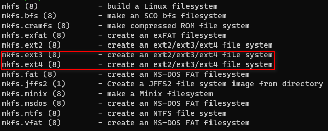 mkfs.ext3 또는 mkfs.ext4가 적절 할 것 같습니다. 저는 윈도우, 맥 모두에 호환이 되는 mkfs.exfat로 테스트를 해보겠습니다. 아이패드와 Windows 운영체제에서도 마운트가 될 지...확인하려는 목적입니다.