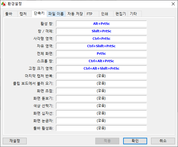 FastStone Capture - 환경설정 - 단축키 설정
