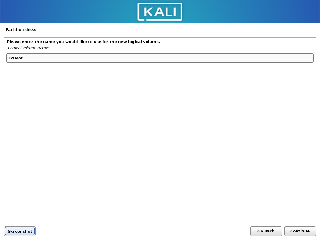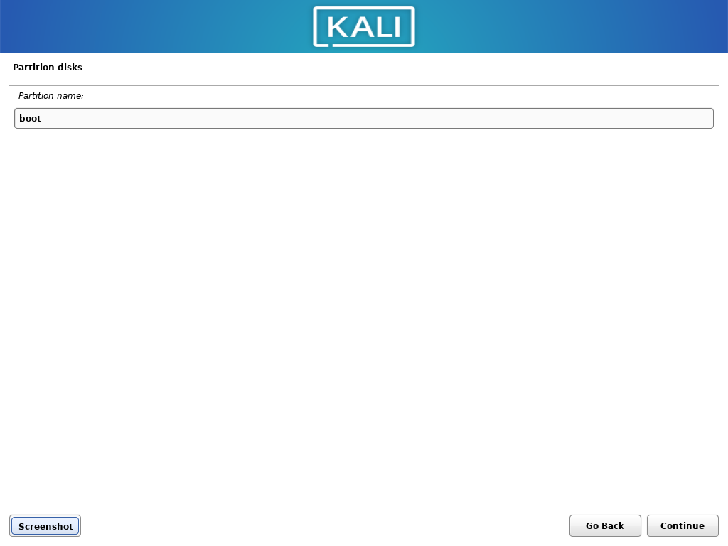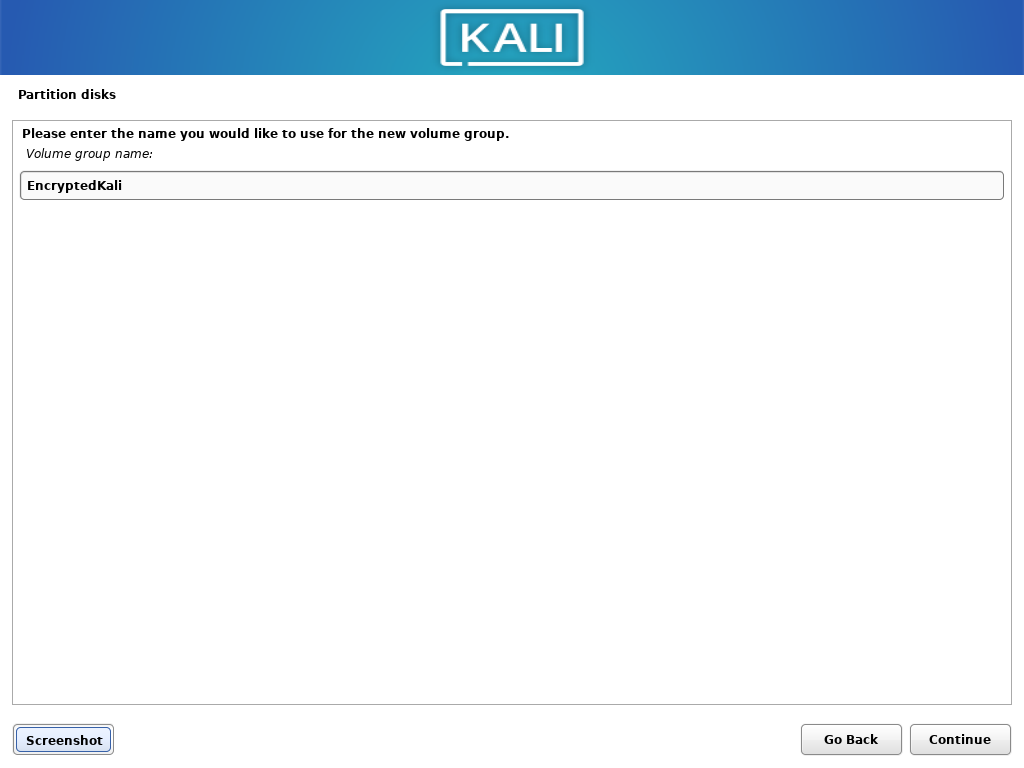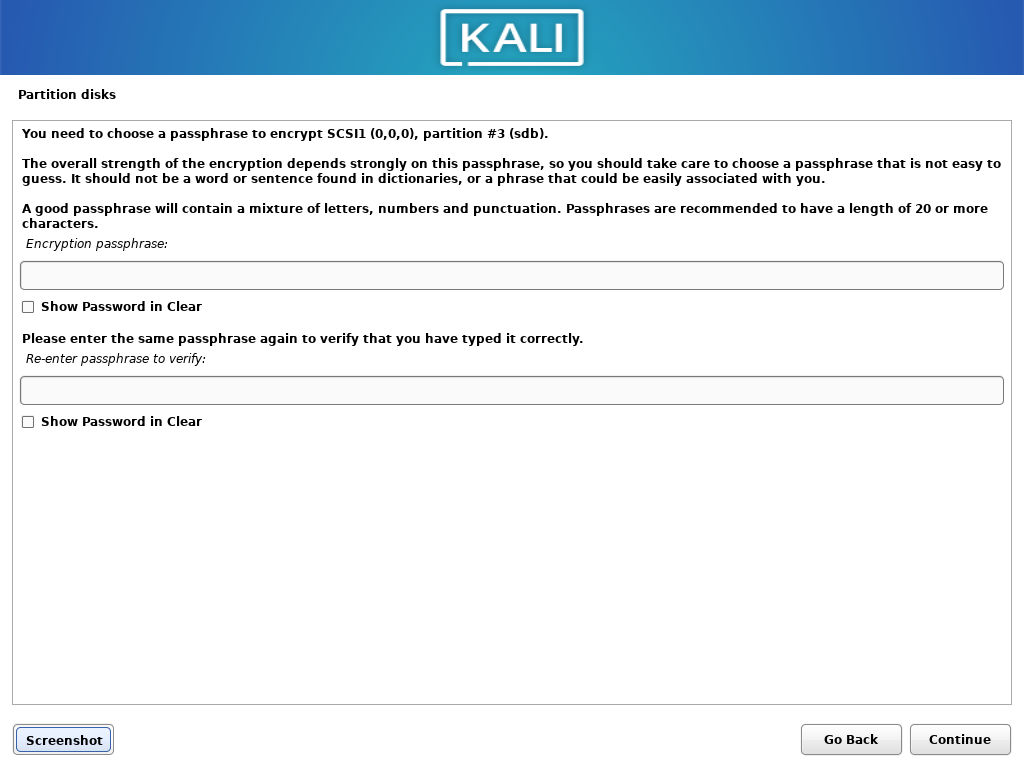 이 비밀번호를 잘 설정해 주세요. 이 비밀번호 없이는 Kali Linux를 부팅 시킬 수 없습니다.