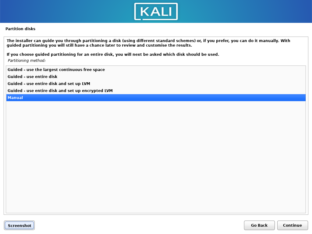 제 경우 디스크 0(Disk 0)에 칼리 리눅스를 설치할 예정입니다.