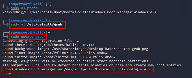 Kali Linux Grub 및 Windows Dual Boot Fix