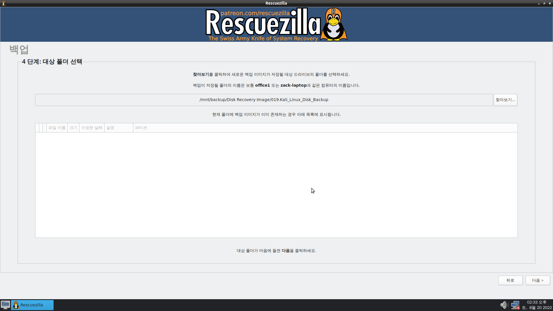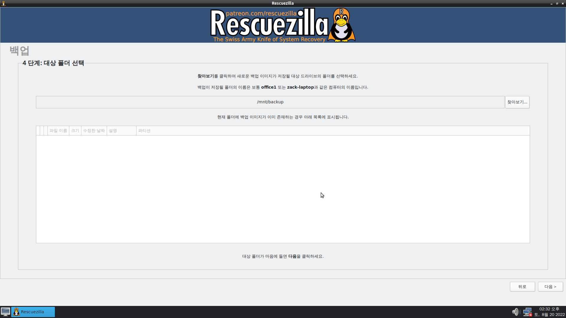 [대상 폴더 선택] 화면에서는 백업 이미지가 저장될 폴더를 설정해 주시면 됩니다.