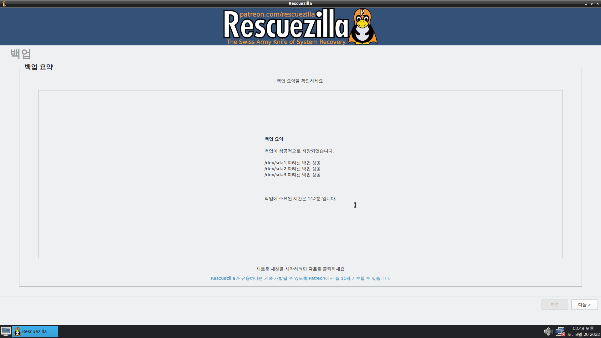 아무런 이상이 없다면 '다음' 버튼을 눌러서 백업을 진행합니다.