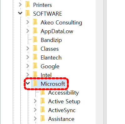 [레지스트리 편집기]를 실행합니다.