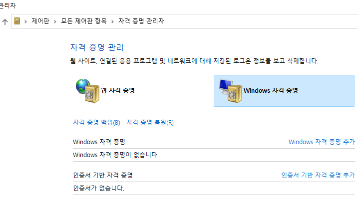 각종 크리덴션은 보통 [자격 증명 관리자]에 저장이 되고 여기에서 삭제할 수 있는데요, 안타깝게도 [네트워크 드라이브 연결]과 관련된 비밀번호는 이곳에 저장되지 않습니다.