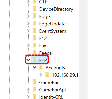 [HKEY_CURRENT_USER] - [SOFTWARE] - [Microsoft] - [FTP] 순서대로 경로를 찾아가시면 됩니다.