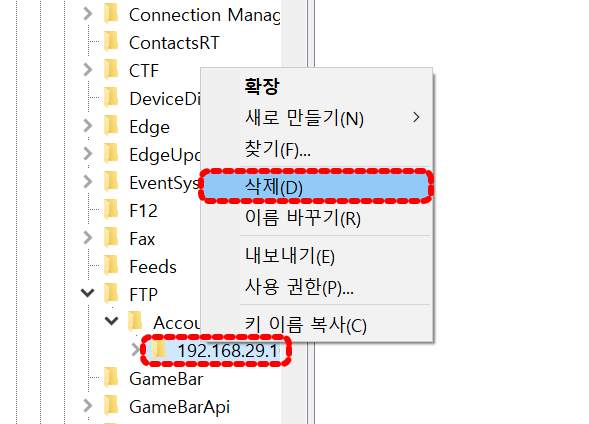 레지스트리 편집을 통한 FTP 비밀번호 제거