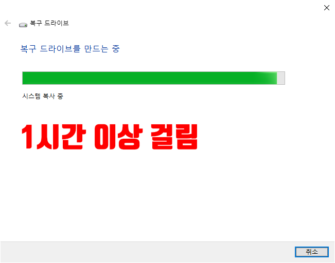 복구 드라이브 만들기 (걸리는 시간)