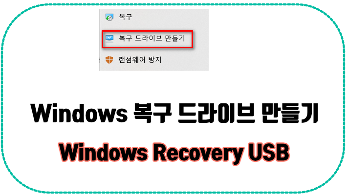 시간적 여유가 있을 때 윈도 복구 USB를 하나 만들어 두세요. 급할 때 정말 요긴하게 쓰일 것입니다.