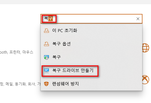 "Windows 시작" - "설정" - "복구"로 검색을 하시면 "복구 드라이브 만들기"라는 프로그램을 실행할 수 있습니다.