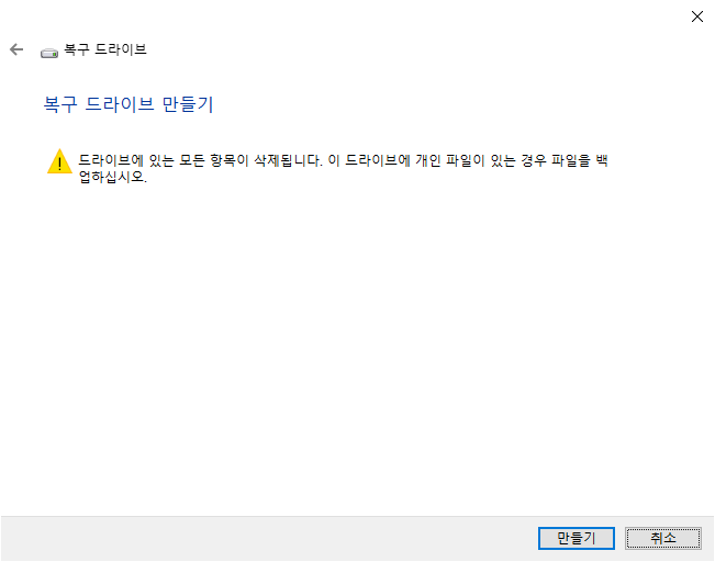 복구 드라이브 만들기