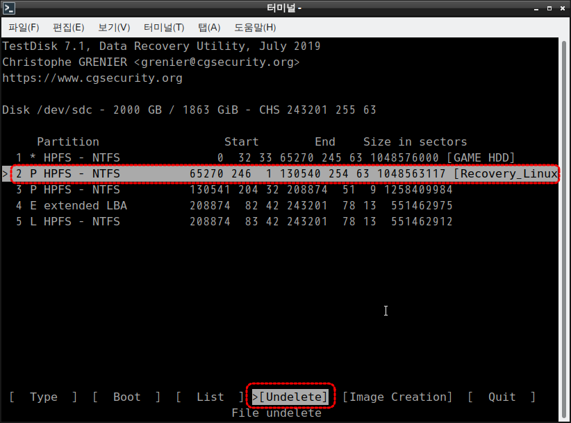 삭제 파티션 및 파일 복구(undelete lost partitions and files)