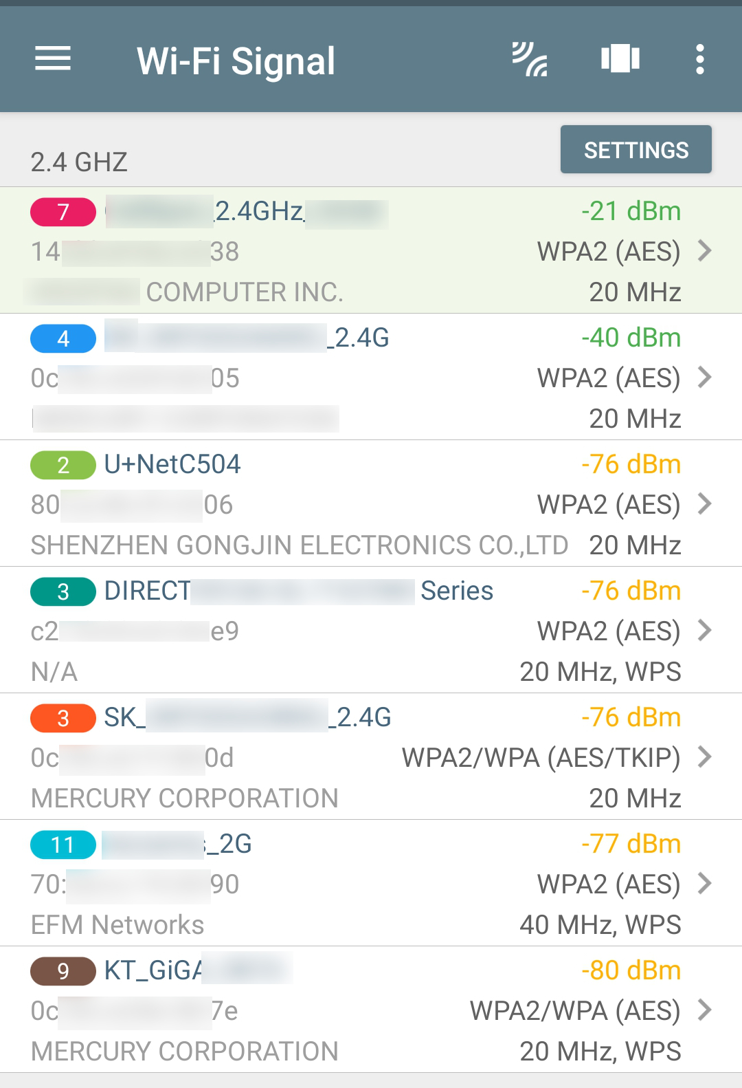 Wi-Fi Signal 강도(Strength) 및 채널을 바로 확인할 수 있습니다.