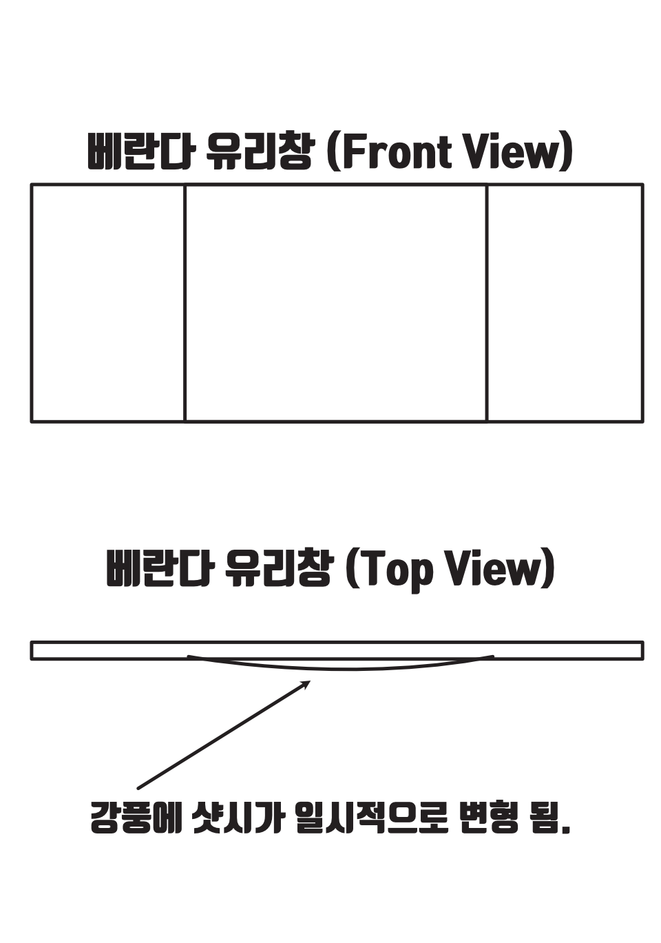 샷시 중간 레일과 내부 사이에는 약간 갭이 있는데요, 태풍 강풍에 이 갭만큼 새시가 밀려 들어올 수 있습니다.