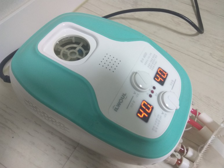 온수 보일러를 매트에 연결하기 전에(만약 조립을 하셨다면 DRAIN & 분리 및 Power off 상태에서) 온수 보일러에 약 350ml~400ml의 물을 넣고, 뚜껑을 닫은 상태에서 동<--->서, 남 <---> 북 방향으로 흔들어 주는 것입니다. 물을 넣고 흔들어주면서 고착된 water level sensor가 release 될 수 있도록 하는 것이죠.