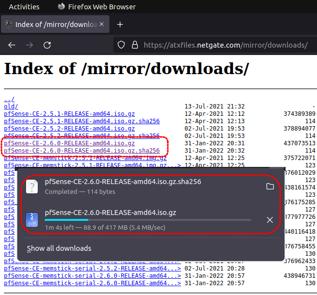 pfSense 최신 버전 AMD64(64-bit) iso 이미지를 공식 홈페이지에서 다운로드합니다. 이때 iso 이미지와 함께 sha256 파일도 함께 다운로드해 주세요.