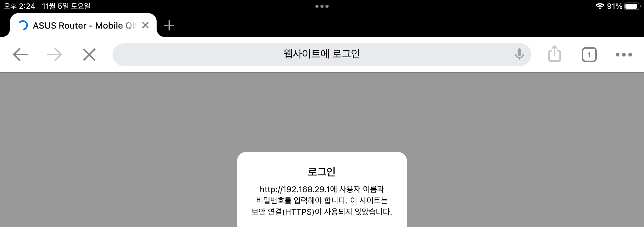 아이패드 크롬 브라우저 TM-AC1900 관리자 페이지 로그인