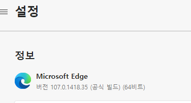 샌드박스의 Edge 버전은 107.0.1418.35입니다.