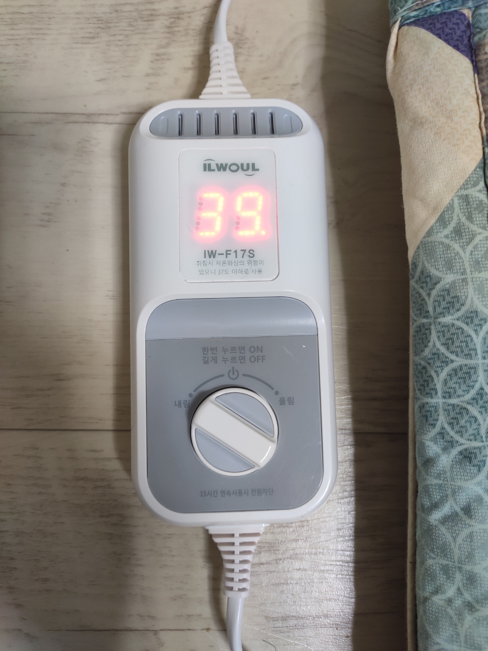 한 번에 너무 많이 온도를 올렸다가 아차 했습니다. 처음 사용하신다면 35도~36도에서 시작해보시고 새벽에 춥다고 느껴지시면 기존보다 약 1~2도 씩만 올려서 테스트해보세요. 저처럼 한 번에 온도를 10도씩 올리시면 위험해서 안 될 것 같습니다.