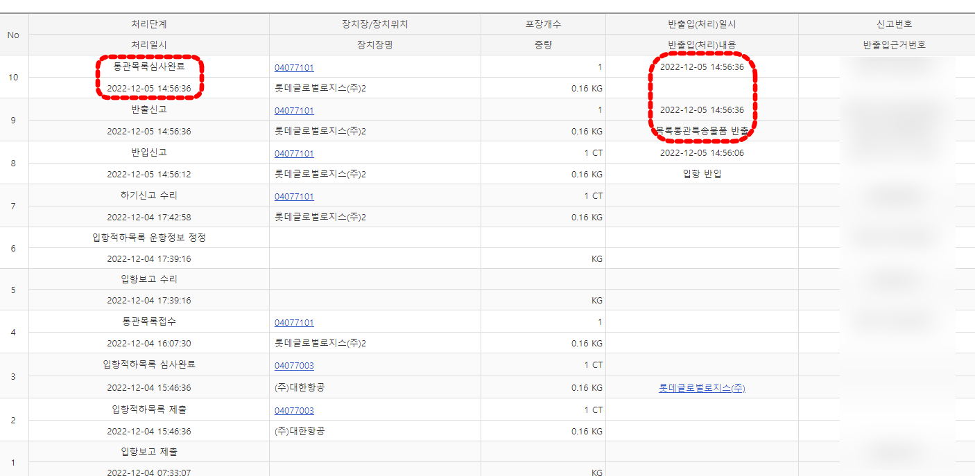 11월 23일 운송인 시설(the carrier facility)을 떠난 제품이 12월 4일 오후에서야 한국에 도착을 하네요. 느려도 너무 느립니다.