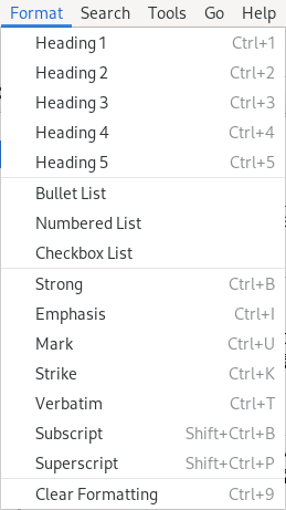 단축키를 사용해서 Heading 1~5, Strong, Emphasis, Mark, Strike 등 Format을 쉽게 적용하거나 변경할 수 있습니다. Markdown 문법을 알고 있다면 단축키 없이도 바로 적용할 수 있습니다.
