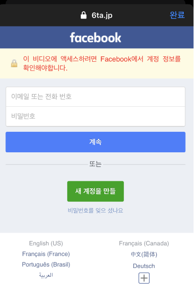위, 아래 이미지의 차이점이 뭔지 알 수 있겠습니까? 아래에 있는 이미지는 피싱 링크를 누르면 나오게 되는 피싱 사이트입니다. facebook 로긴 page를 그대로 복사하여 정상적인 facebook 로그인창으로 보이게 됩니다. facebook logo위에 보시면 6ta로 시작하는 이상한 URL이 보이시죠?