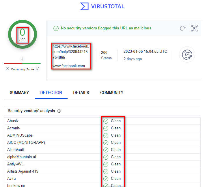 정상적인 page로 확인됩니다. 90개의 바이러스 엔진이 검사를 했으며 탐지 결과 모두 Clean으로 나오고 있습니다.