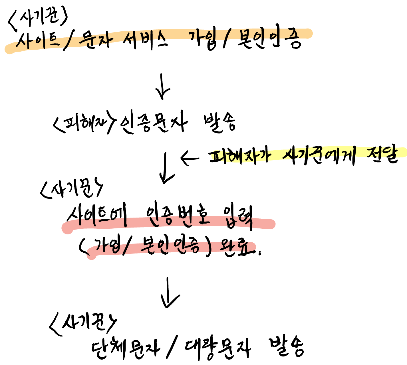 사기꾼들이 어떻게 인증번호를 사용해서 스팸문자를 발송하는지 살펴보도록 하겠습니다.