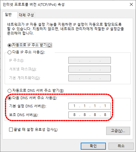 원하는 DNS 서버를 선택해서 사용하시면 됩니다.