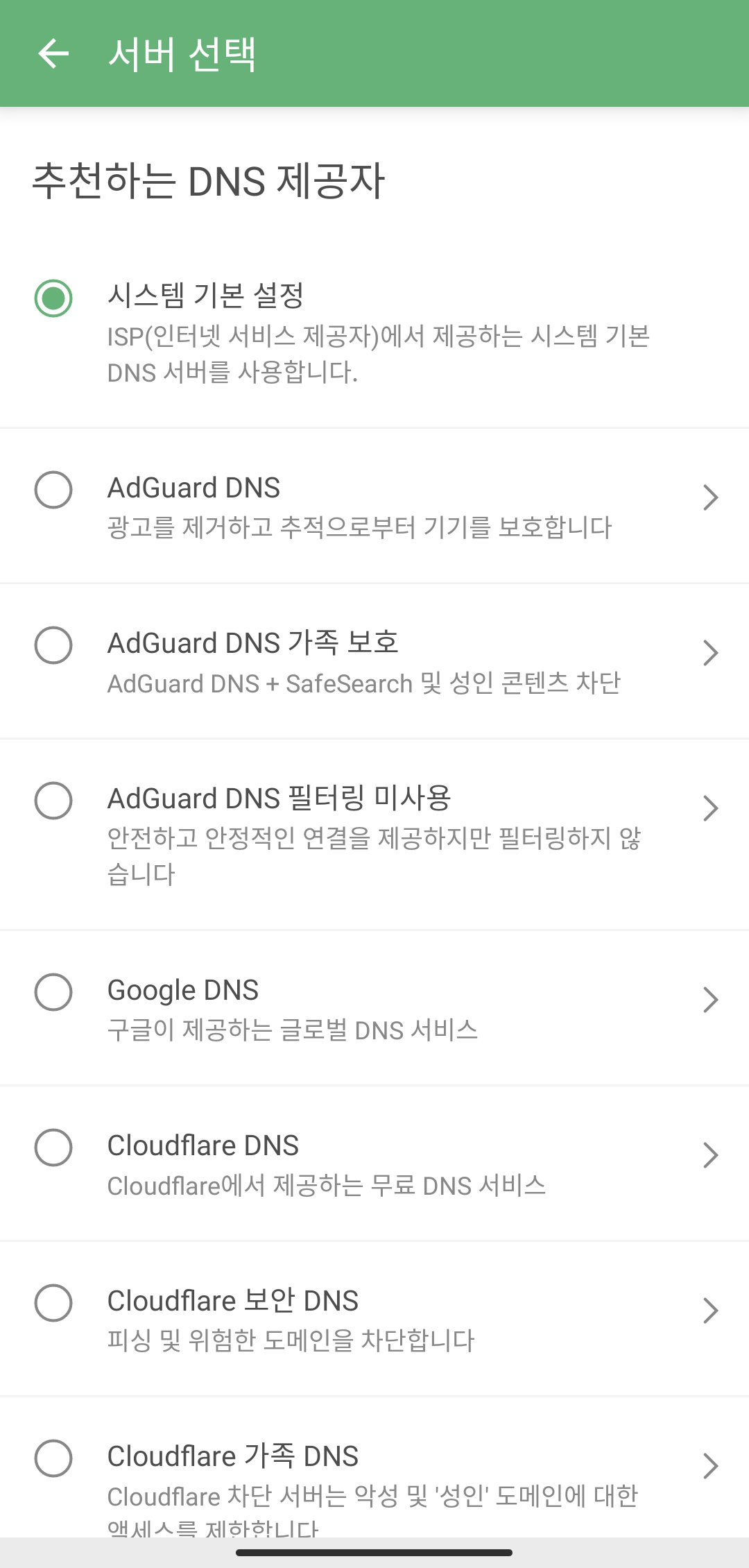 DNS 서버에 대해서 잘 모른다면 Cloudflare, Google 2중에서 아무거나 선택하셔도 안전하게 사용할 수 있습니다.