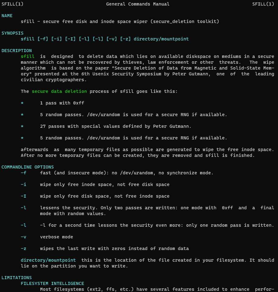 따라서 -l (총 2번의 패스, 1번은 0xff, 마지막은 랜덤 값)을 채우는 방법을 많이 사용합니다.