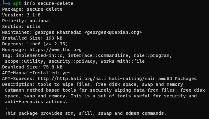 secure-delete 프로그램이 설치되면 총 4개의 프로그램이 설치됩니다.