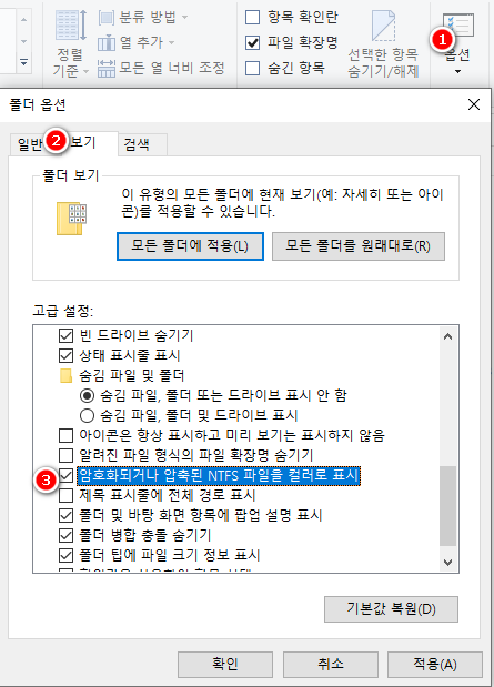 암호화된 파일 이름이 '녹색'으로 표시되게 됩니다.