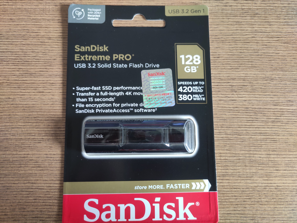 SanDisk Extreme Pro USB 3.2 Gen 1 내부 포장