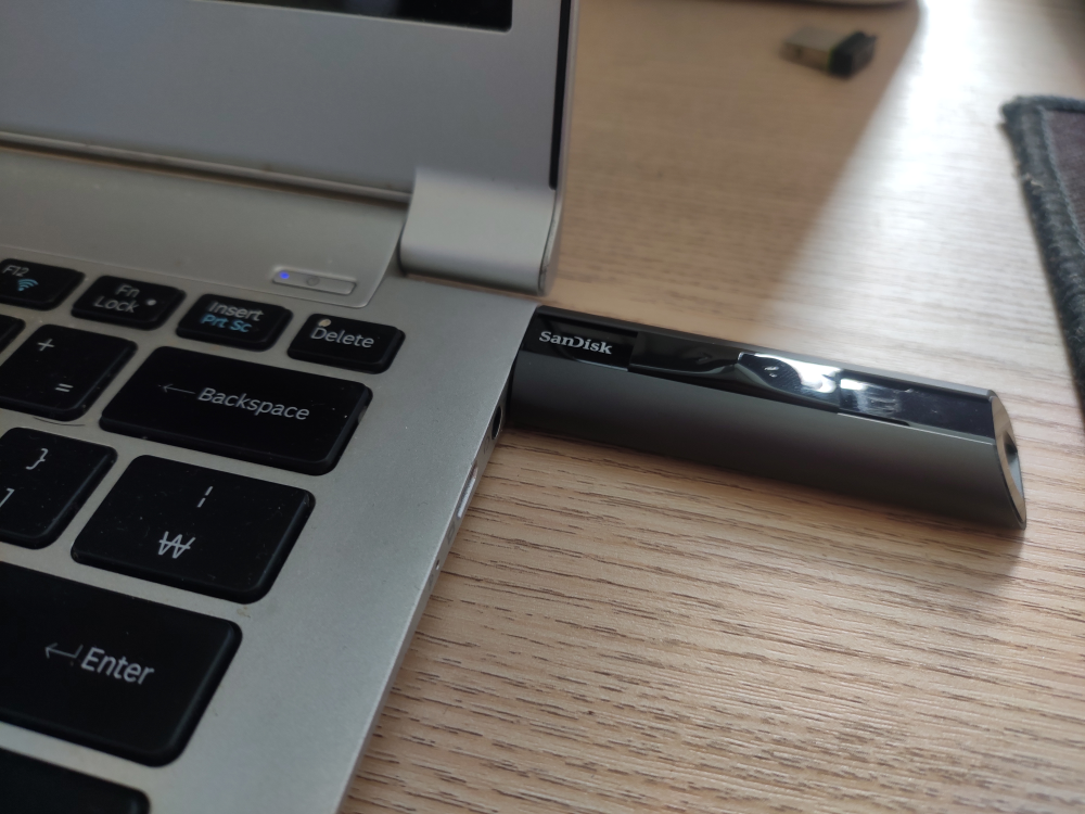 기존에는 Windows To Go를 옛날 노트북에서 떼어낸 SSD + SSD Case에 설치해서 사용했었는데요, SSD 수명이 다 되어서 자료 읽기/쓰기에 문제가 생기기 시작했습니다. 그래서 SSD + SSD Case 조합보다 사이즈는 더 작고 속도는 적당한 USB를 하나 구매했습니다.