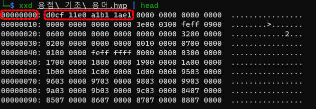 hwp 0 d0cf 11e0 a1b1 1ae1 을 입력하고 esc키를 누릅니다.