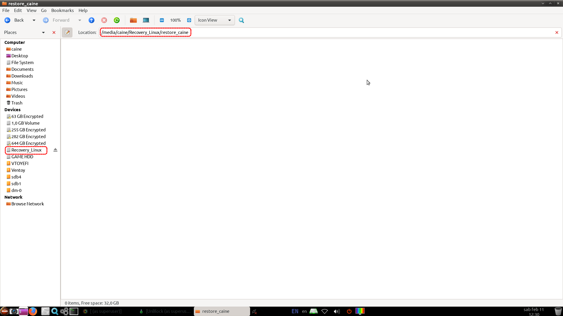 caine's Home(thunar, 탐색기)를 실행하고 저장된 경로로 찾아갑니다.