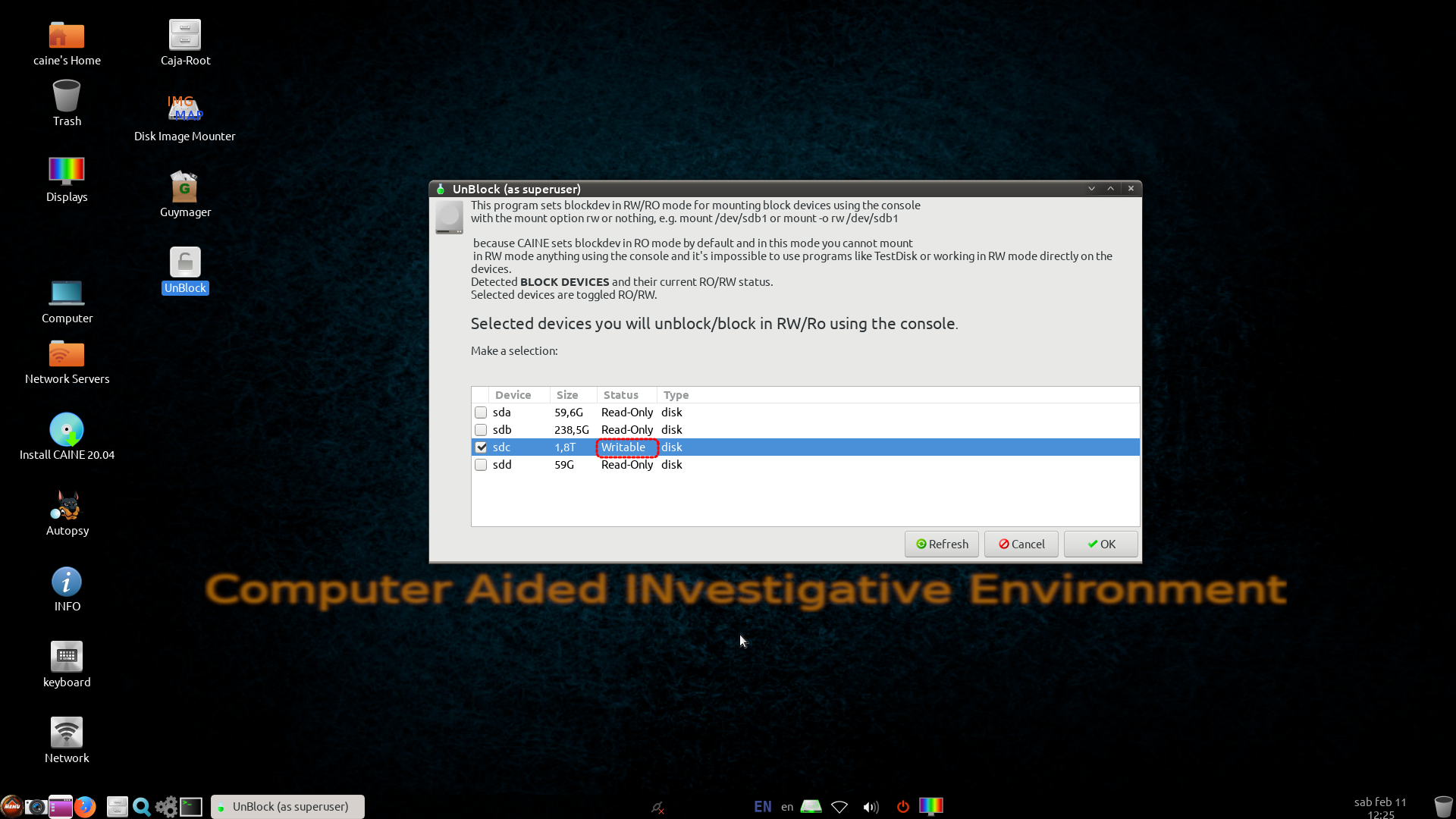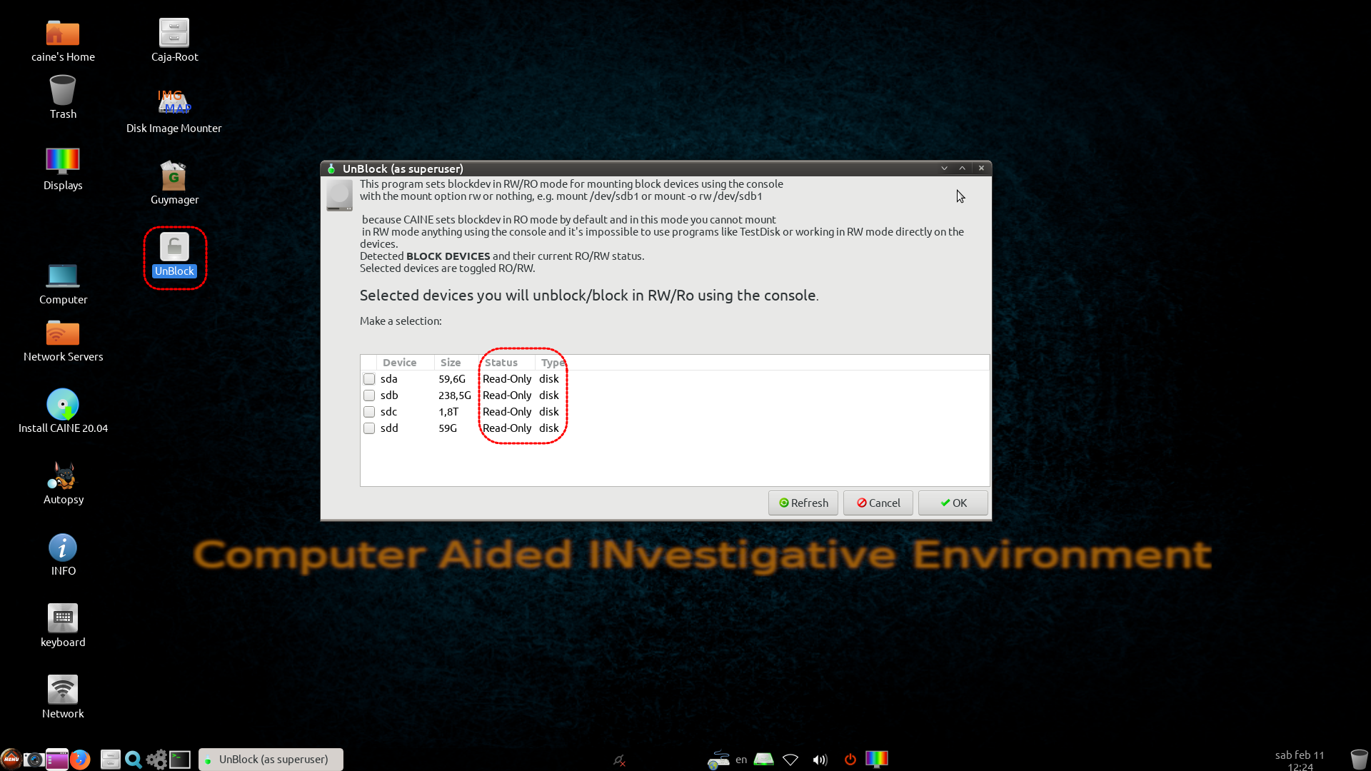 CAINE 주의 사항 및 UnBlock 사용 방법