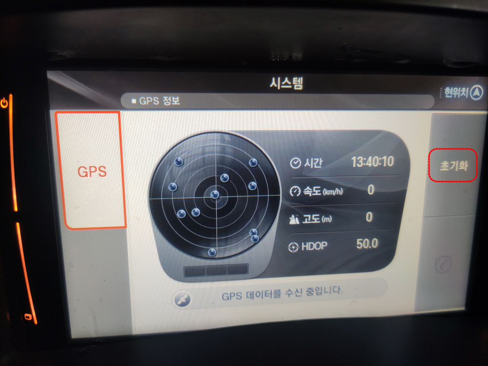 GPS 메뉴가 나오게 되면 "초기화"를 눌러주세요.