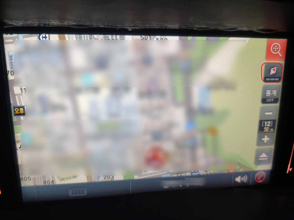 구형 아이나비 네비게이션을 사용하는 사용자라면 나침판 모양 아이콘을 터치해 보세요. GPS가 연결된 상태라면 녹색의 상태가 표시되지만 정상적으로 연결이 되지 않기 때문에 저렇게 회색으로 보이게 됩니다.