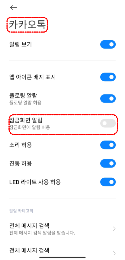 잠금 상태에서 카카오톡 메시지가 노출되는 경우 휴대폰을 습득한 사람 역시 그 내용을 파악할 수 있기 때문입니다.