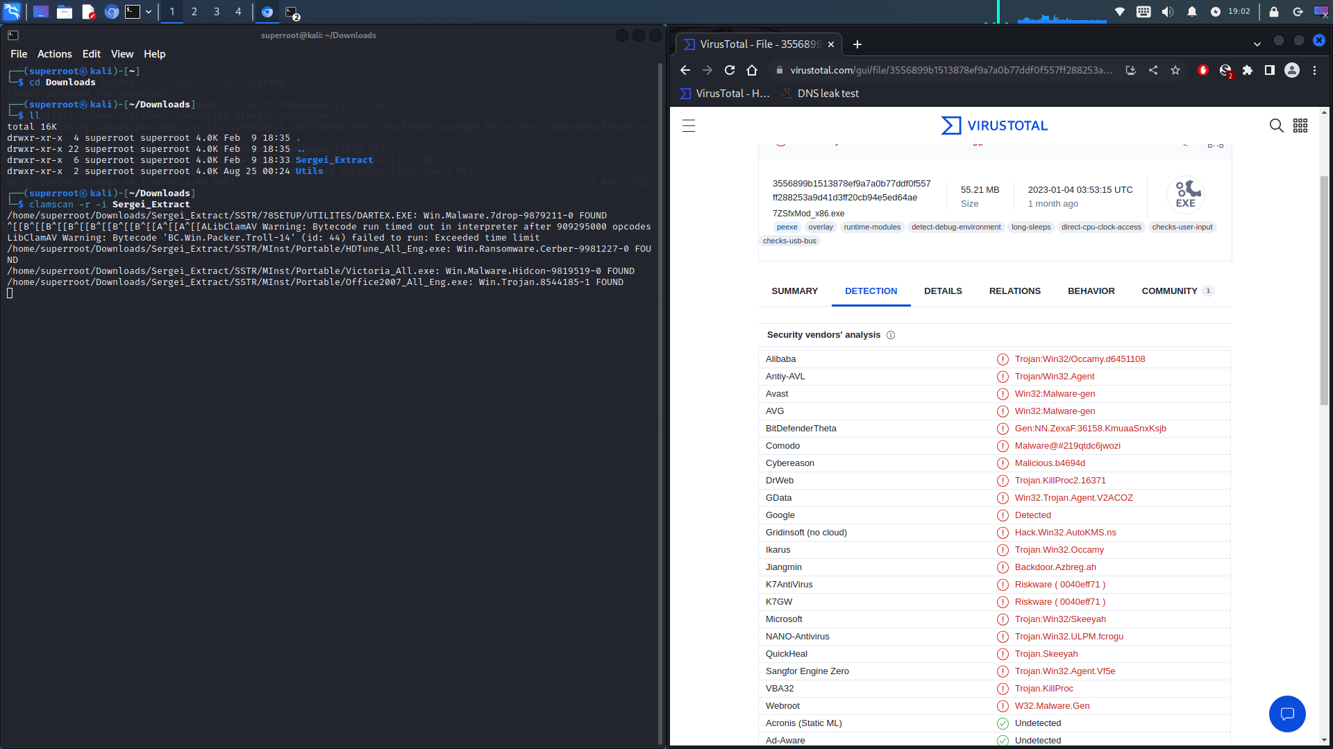PE 중에서 상당히 유명한 Sergei Strelec PE를 공식 사이트에서 다운받아 점검을 해 봤습니다. download 받은 iso 파일을 extract 한 다음 1차로 clamav로 검색을 하고 Found로 나오는 파일을 virustotal.com에 개별적으로 업로드하여 다시 확인을 해보고 놀랐습니다.