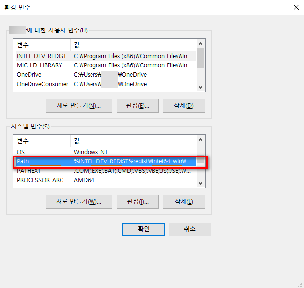 환경 변수 편집