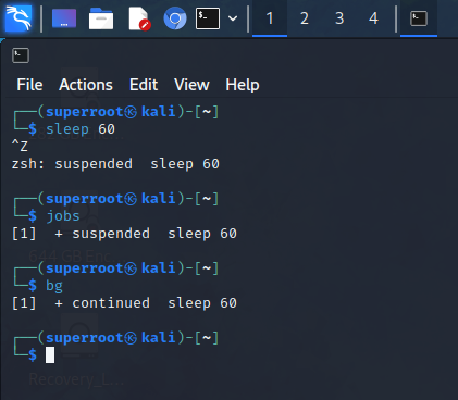 위 이미지를 보시면 fg로 작동하는 프로세스를 Ctrl + z로 suspended 시킨 이후, bg를 눌러서 다시 해당 명령어가 continued 상태로 바뀐 것을 확인할 수 있습니다.(bg에서 실행)